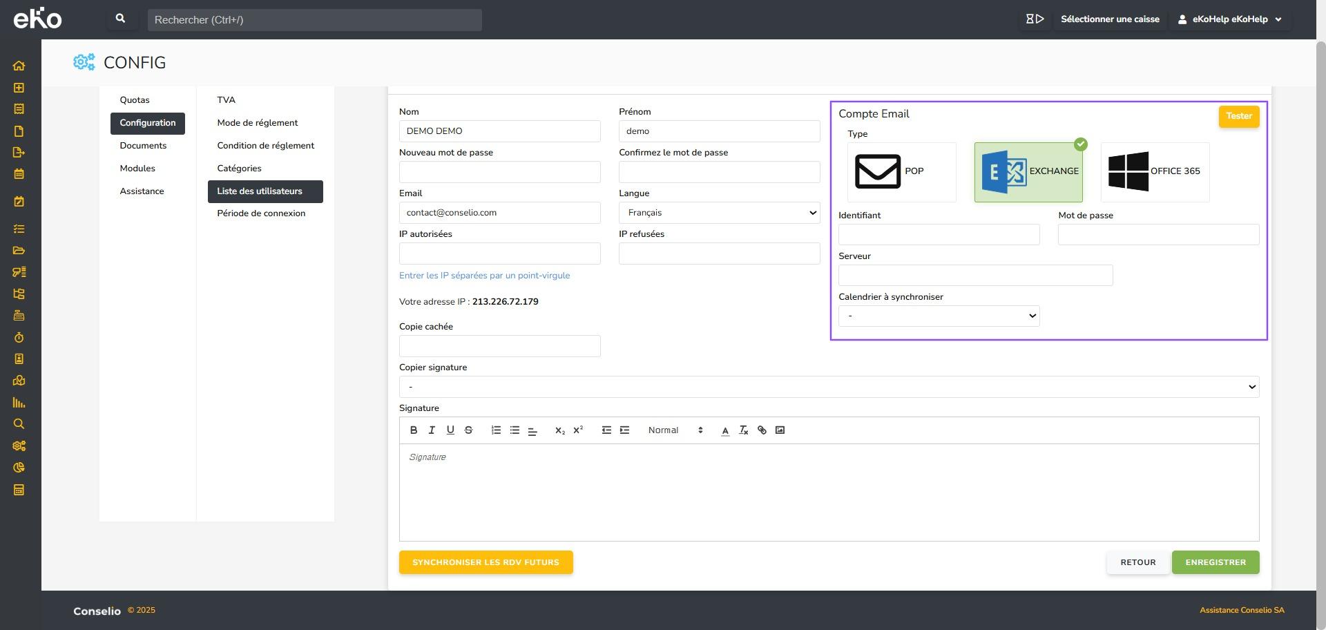Pour configurer un compte email sur eKo, vous devez disposer de droits administrateurs.
