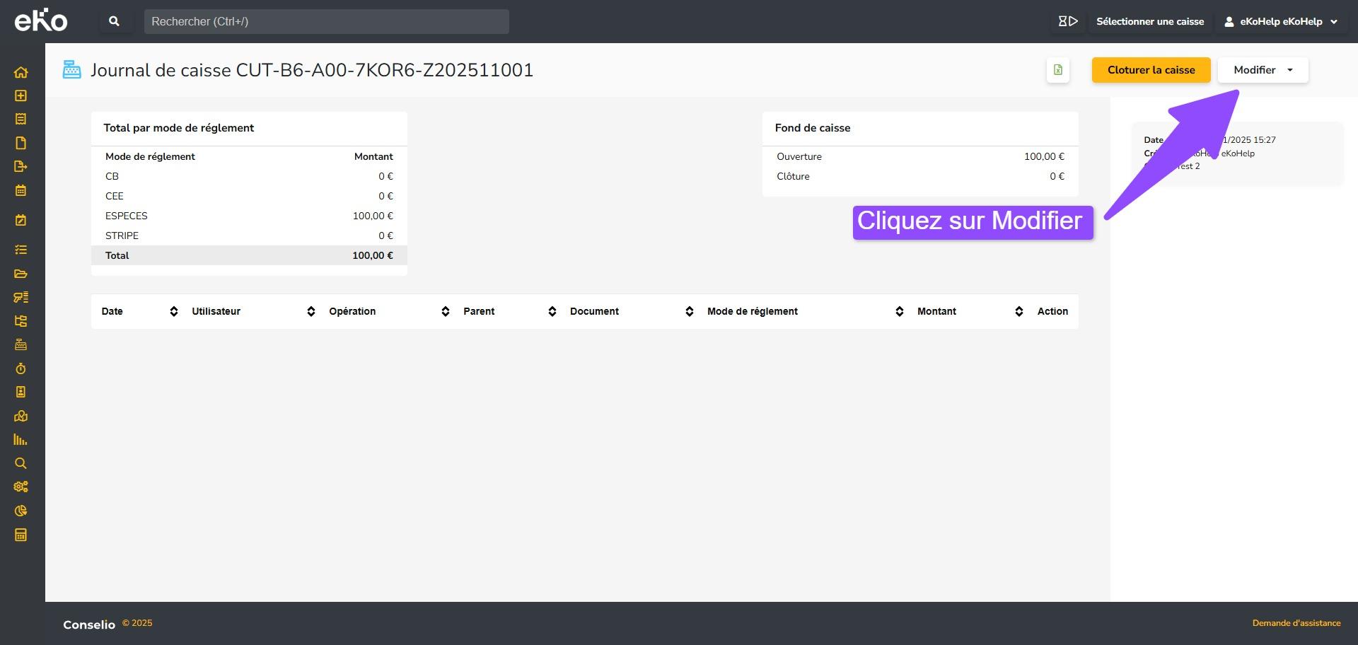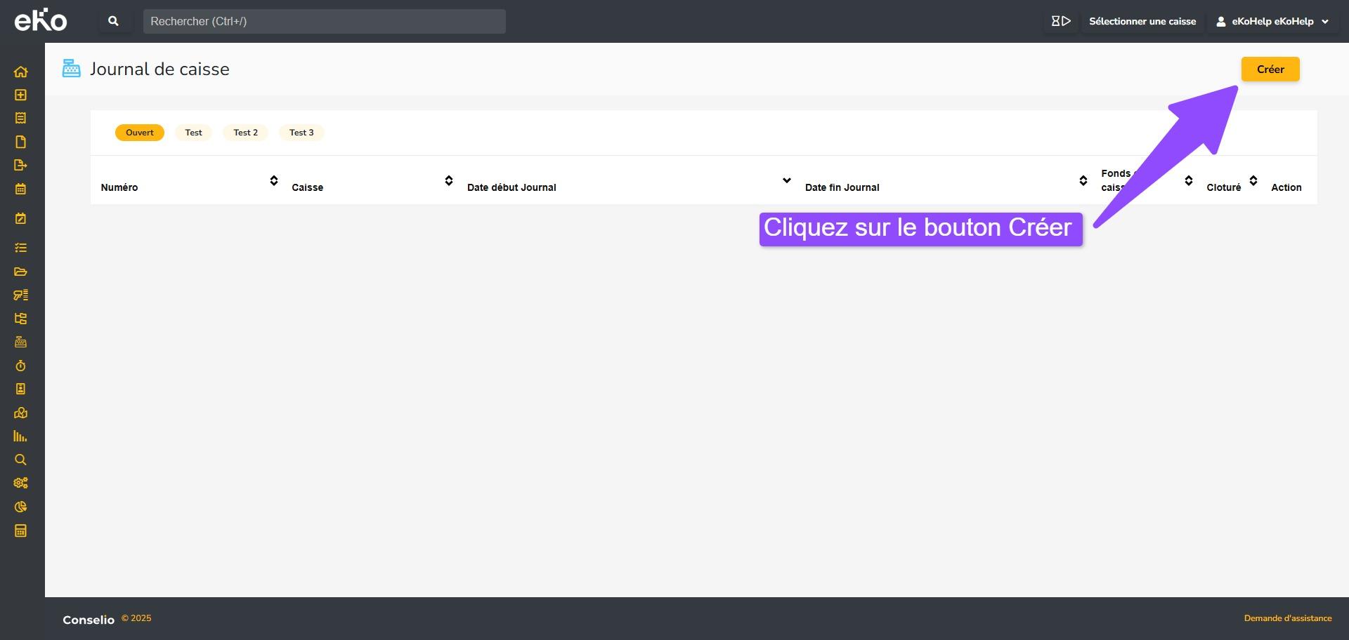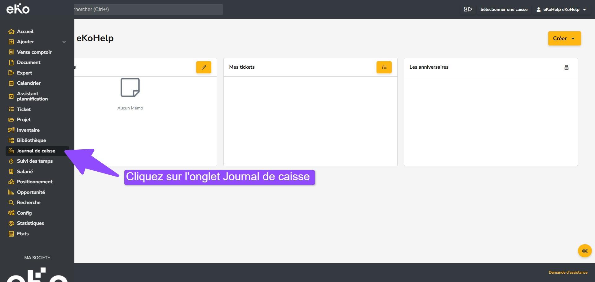- Depuis le menu latéral, cliquez sur l’onglet à gauche Journal de caisse.