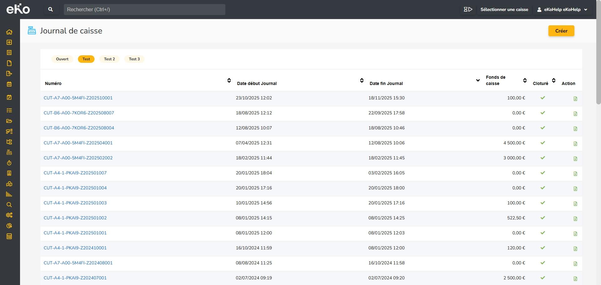 - Retrouvez ici l’ensemble des journaux de caisse.
