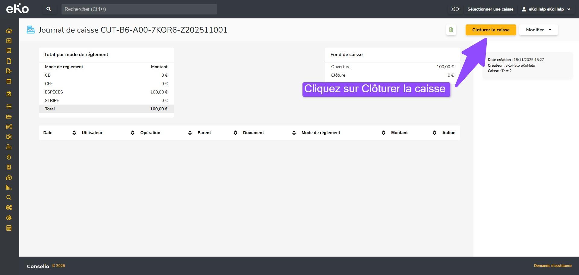 - Lorsque vous êtes prêt à clôturer, cliquez sur le bouton Clôturer la caisse.